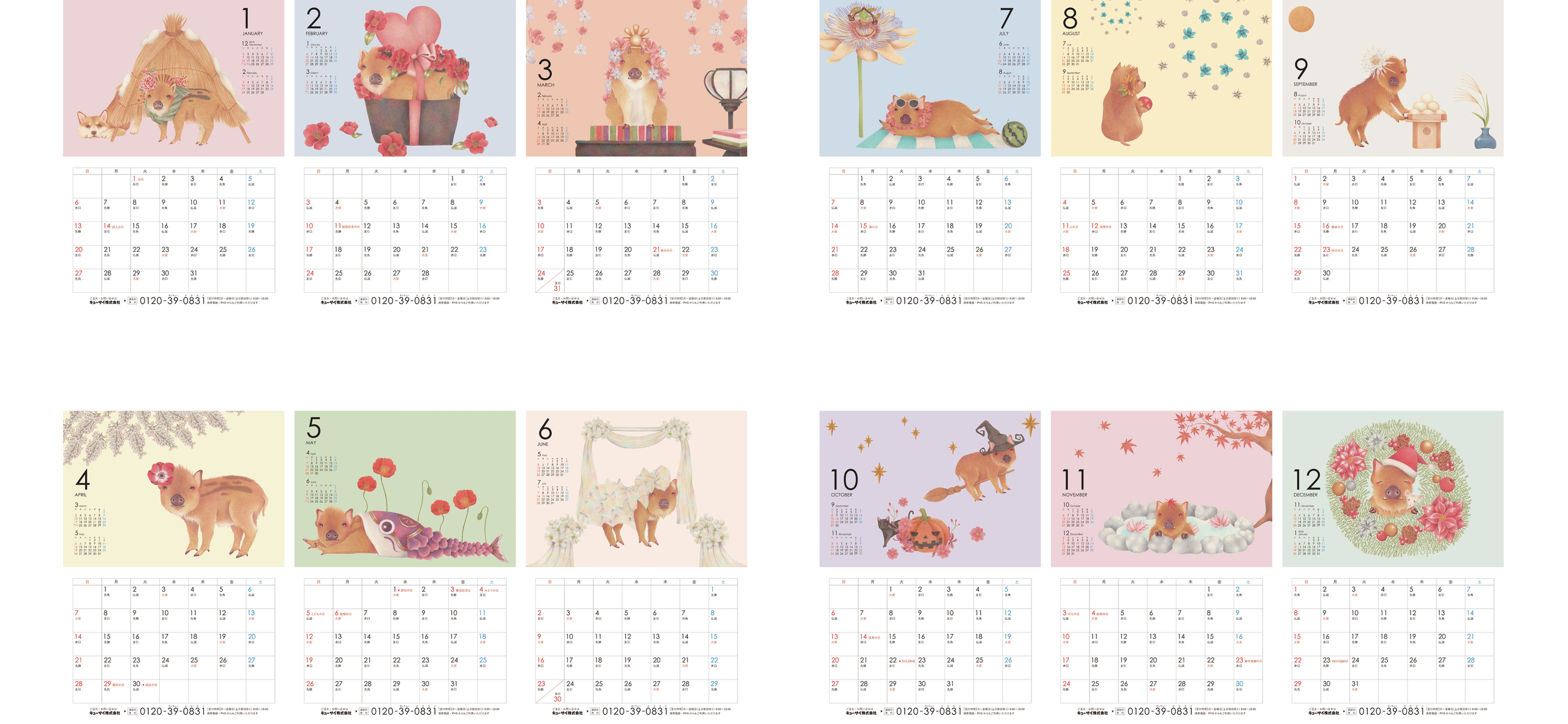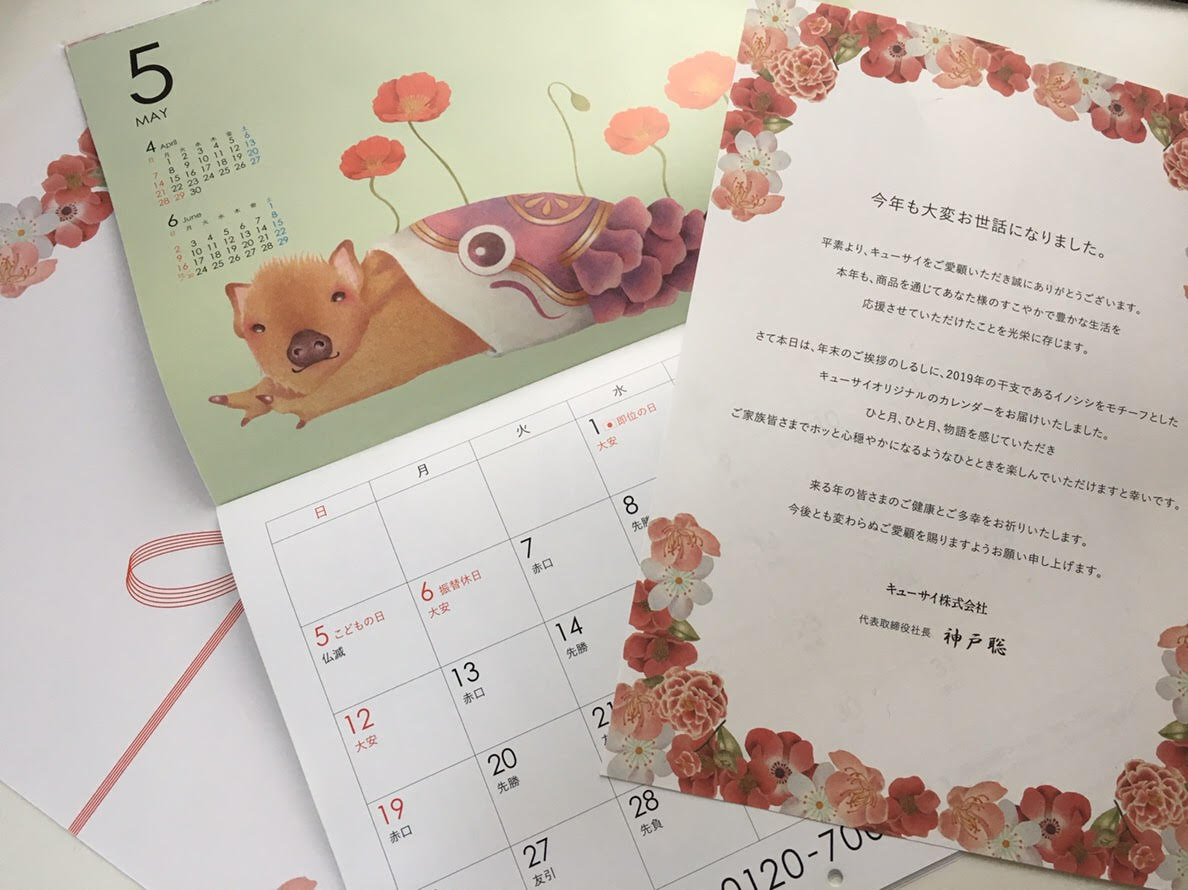 キューサイ株式会社様2019年ノベルティカレンダーのイラストを制作。