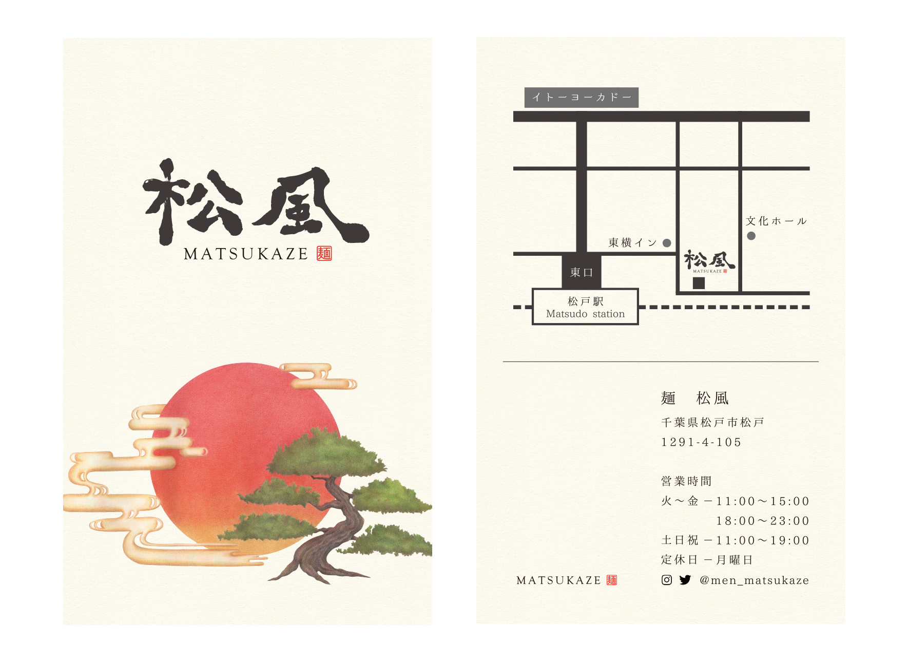 麺 松風さんのショップカードと名刺に使用されるイラストを描かせていただきました。
